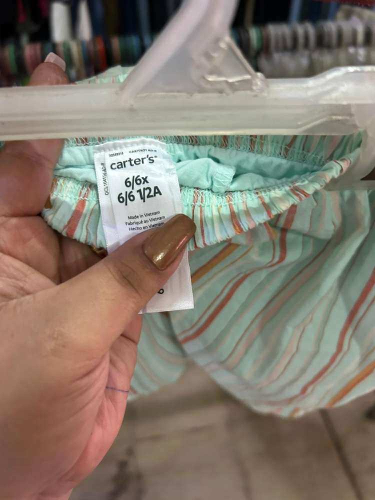 Comprar Falda para niña talla 6, Menta con rayas naranja y roja