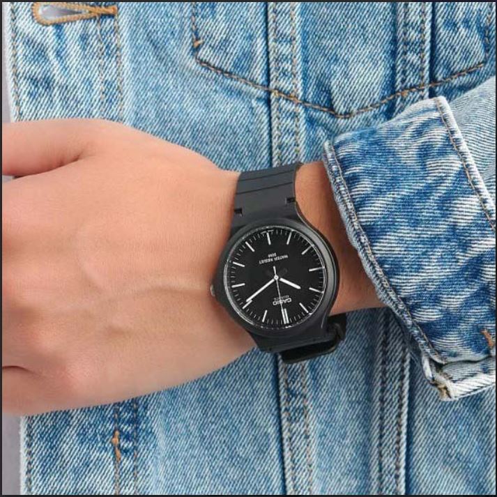 Comprar Reloj Casio Original Black, El Casio MW-240-1EV es un reloj analógico que destaca por su estilo minimalista y esfera de fácil lectura. Su caja grande de resina (48 × 43.6 × 10.3 mm) y correa flexible lo hacen cómodo y resistente para el uso diario. Con resistencia al agua de hasta 50 metros, puedes llevarlo sin preocupaciones bajo la lluvia o durante actividades acuáticas ligeras